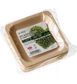 24 Piatti quadrati in legno 14x14x2,5cm Leone