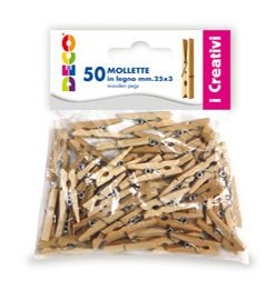 86075 – Confezione 50 mollettine in legno 25mm colore naturale DECO – Conf. da PZ. 1