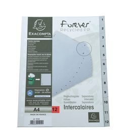 Intercalare numerico in PP riciclato 12 tasti 1-12 grigio A4 Exacompta